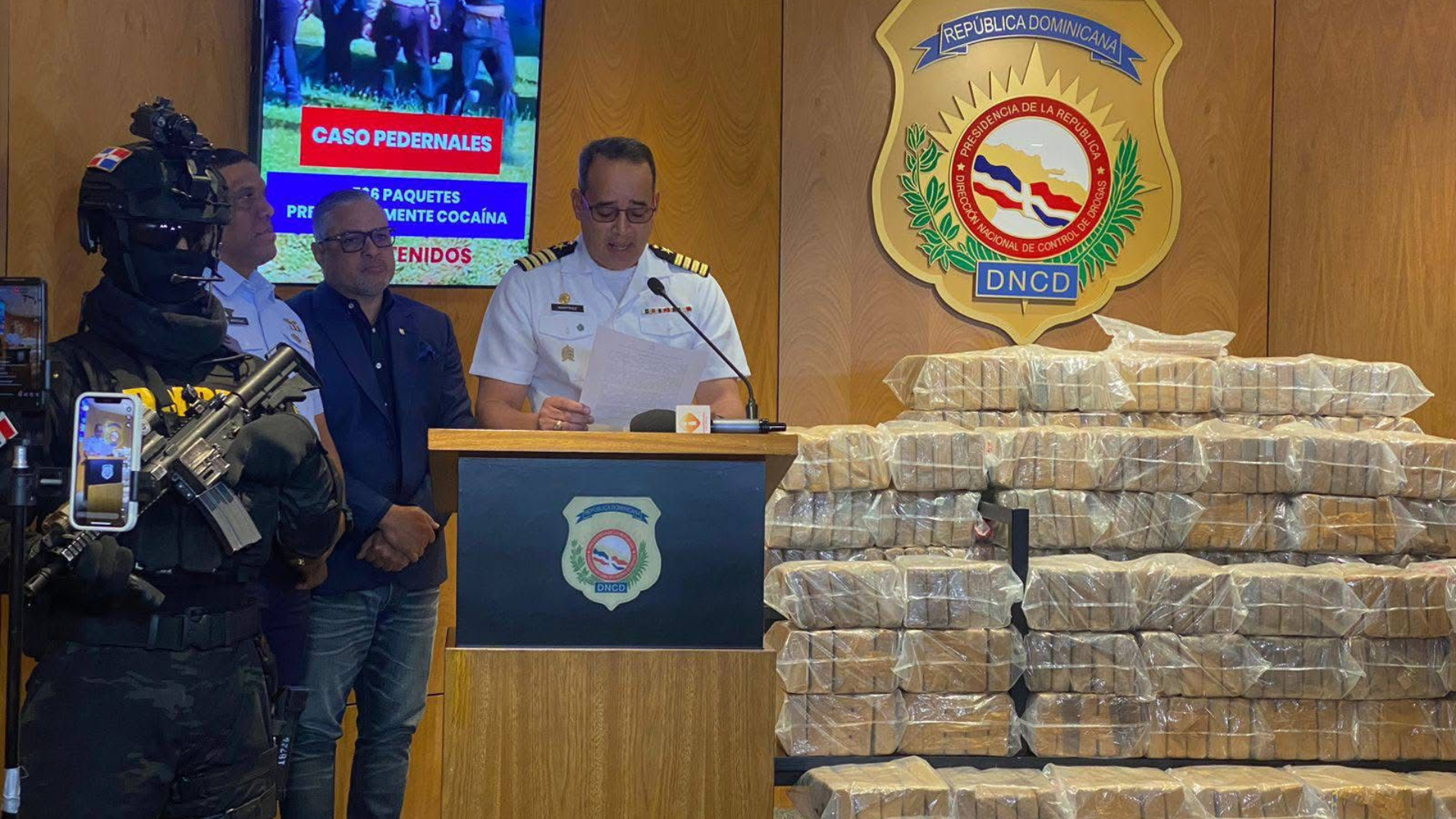Santo Domingo.– En un amplio despliegue de fuerzas por aire, mar y tierra, agentes de la Dirección Nacional de Control de Drogas (DNCD), miembros de la Armada de República Dominicana (ARD), la Fuerza Aérea (FARD), efectivos del Ejército (ERD), apoyados por agencias de Inteligencia del Estado y coordinados por miembros del Ministerio Público, incautaron 766 paquetes presumiblemente cocaína, durante una intensa labor conjunta y combinada desarrollada en las costas de la provincia de Pedernales.